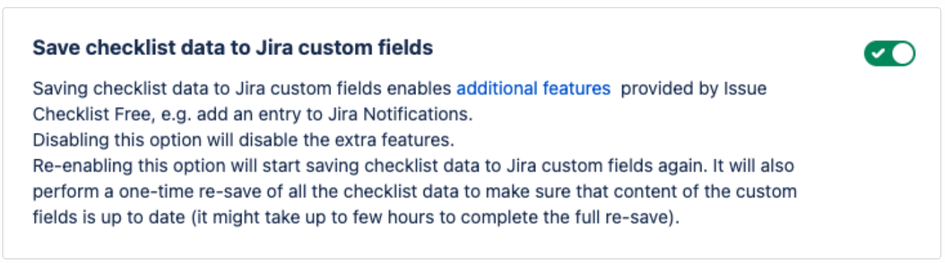 Please make sure to enable the custom fields integration within the Issue Checklist for Jira “Global Settings”.