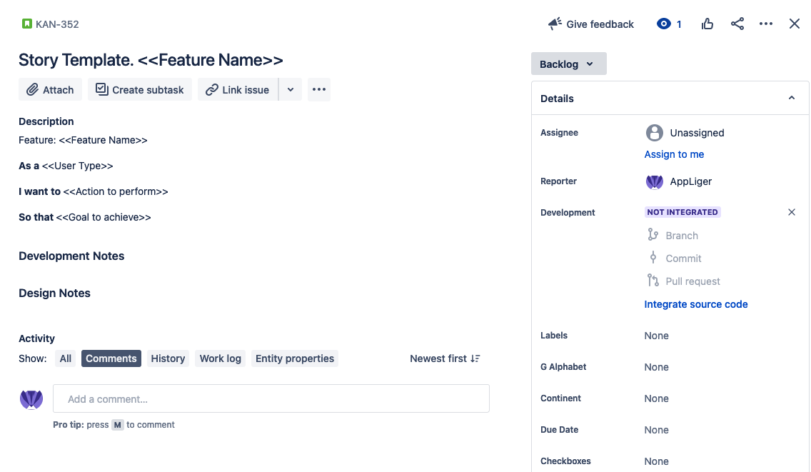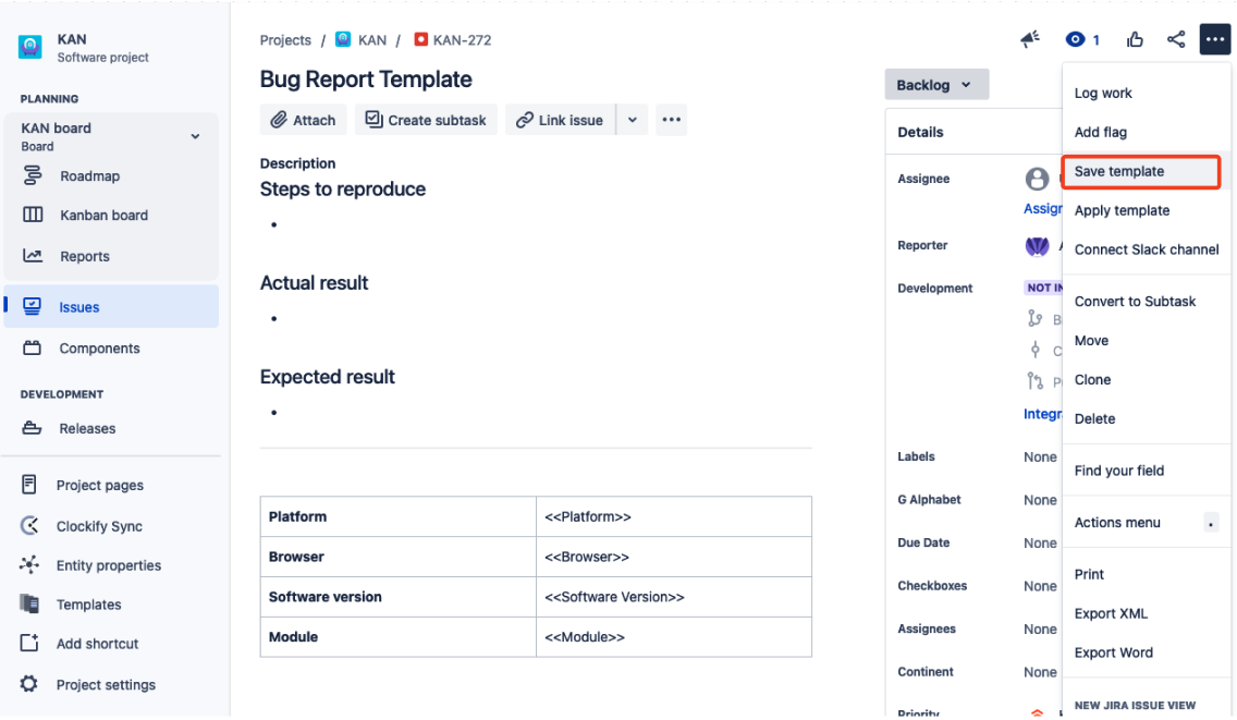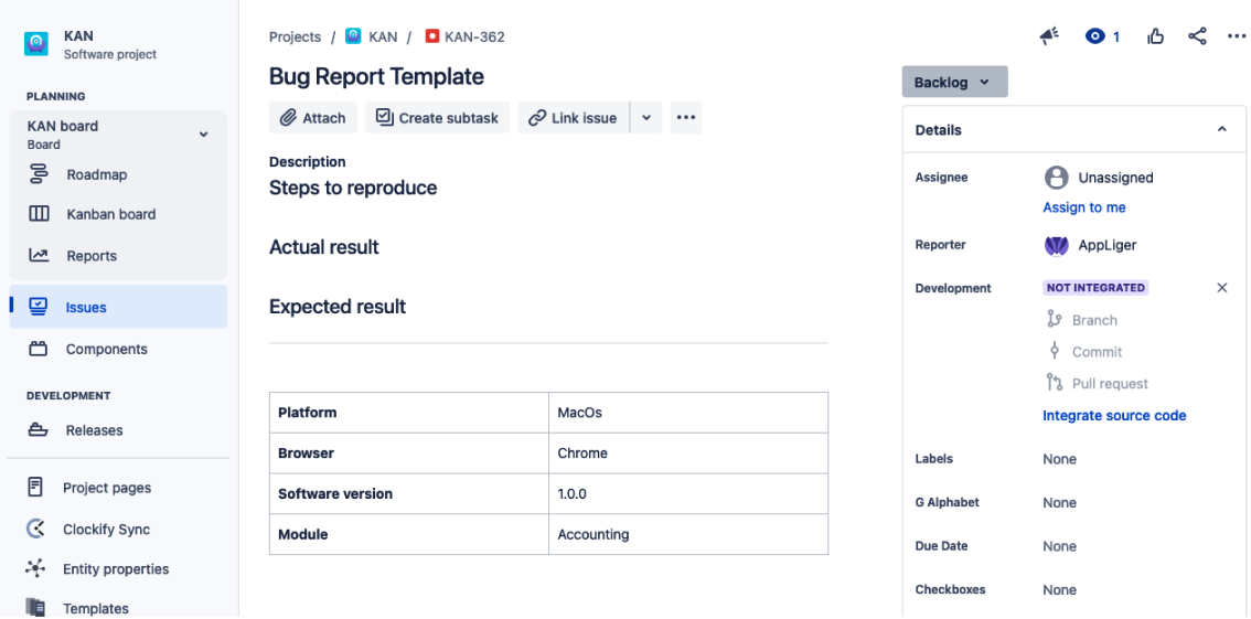 Why do we need templates? Because they save our time in the re-creation of the company’s processes, guide users on filling in the most needed information per Jira issue, and help to structure bug reporting to identify steps to reproduce.